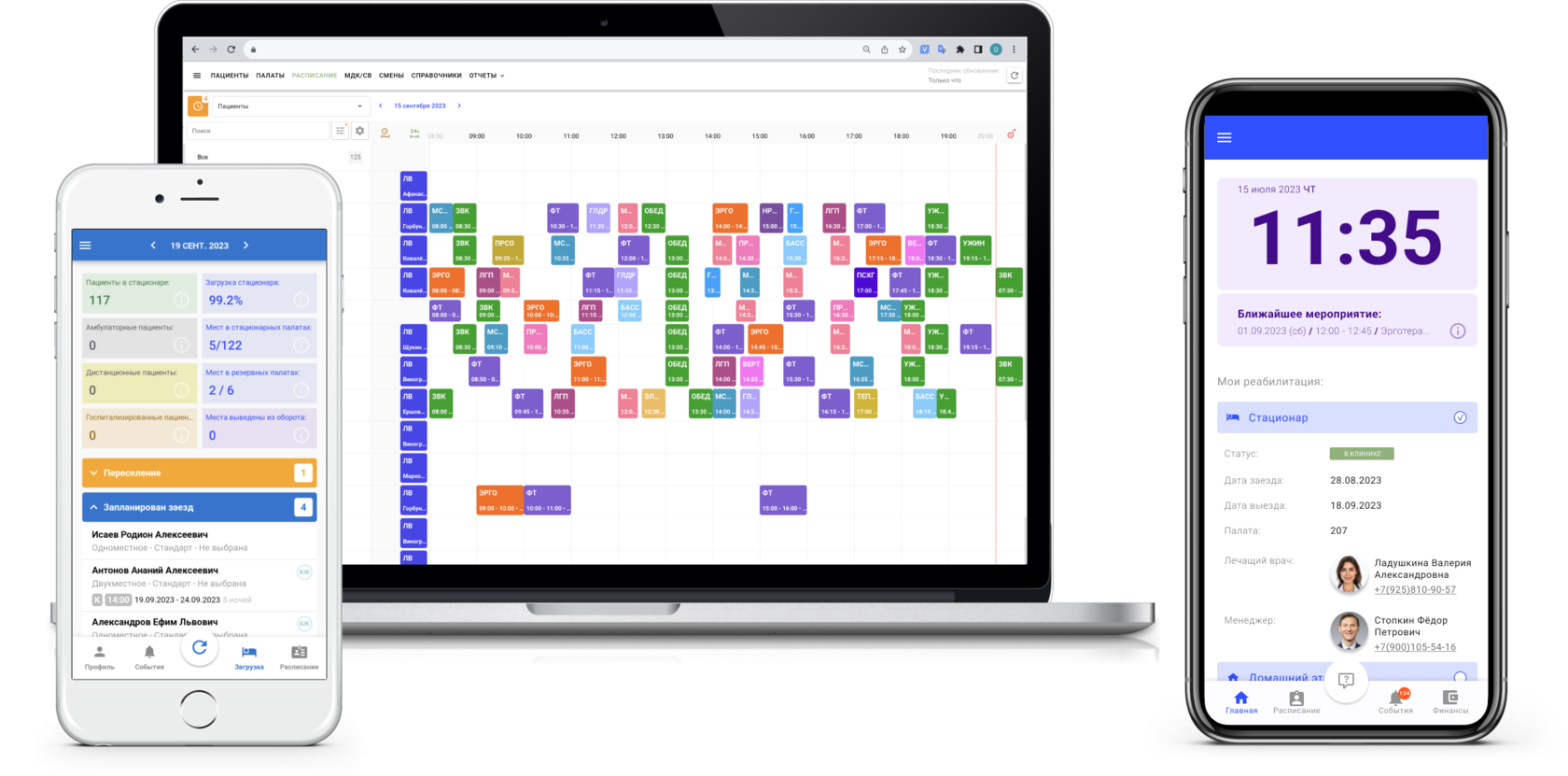 Цифровое расписание для экранов палат, постов медсестер и устройств команды